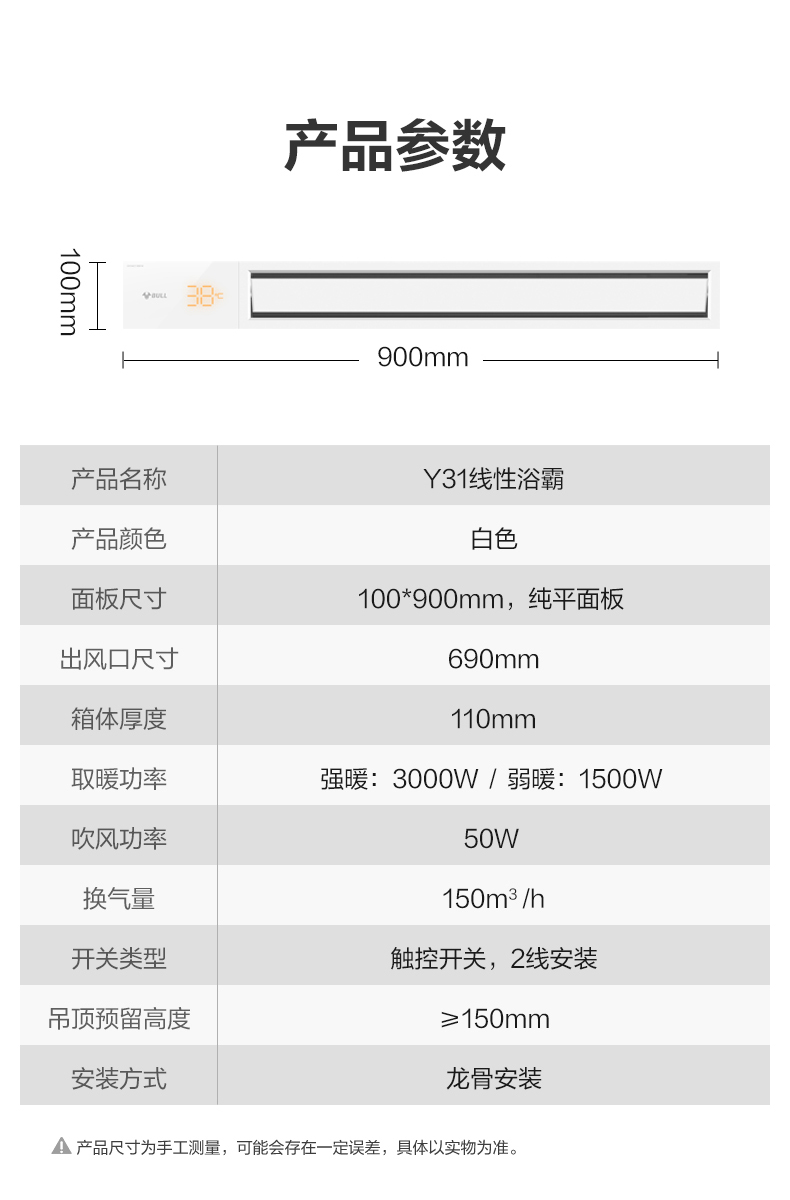 公牛生活電器線性浴霸(白色)Y31