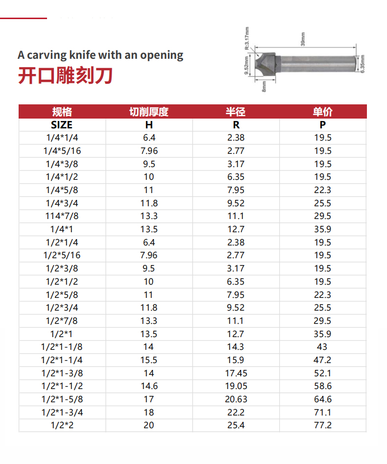 專(zhuān)業(yè)級(jí)開(kāi)口雕刻刀圓弧刀R角刀花樣刀木工鑼銑刀木工刀具