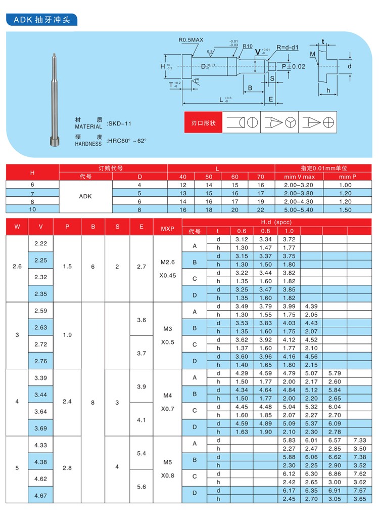 ADK抽牙沖針SKD-11翻孔拉伸模具沖頭三節攻絲高速鋼沖針非標定做
