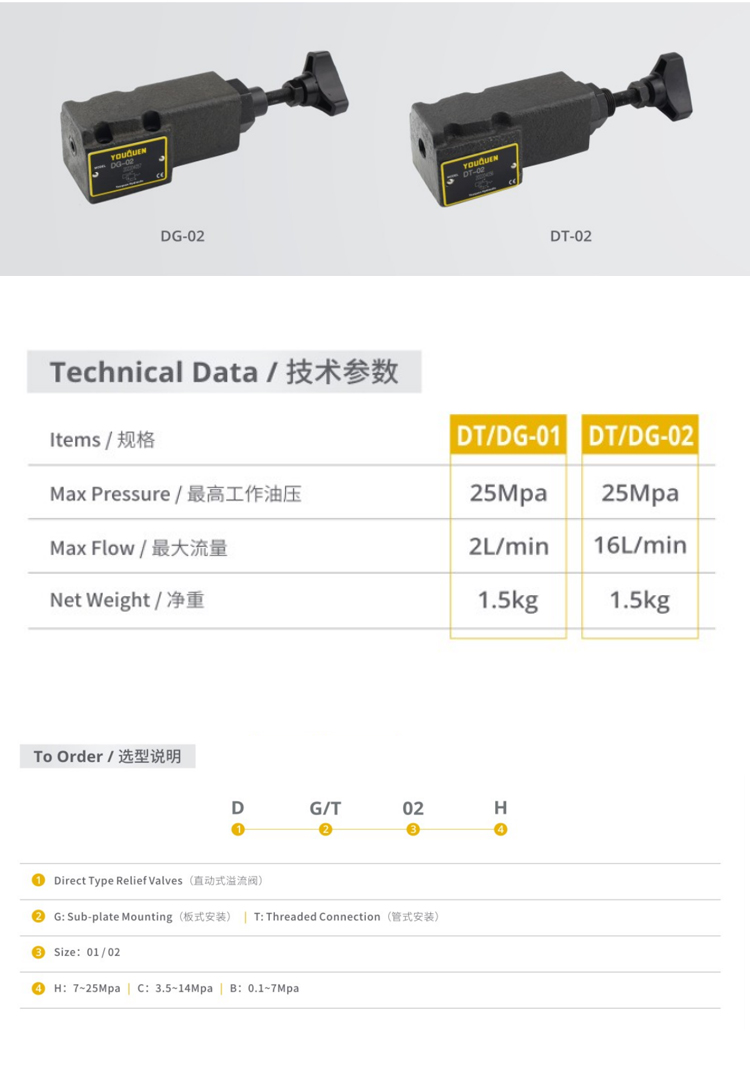 油昆直動式溢流閥DG-02/DT-02