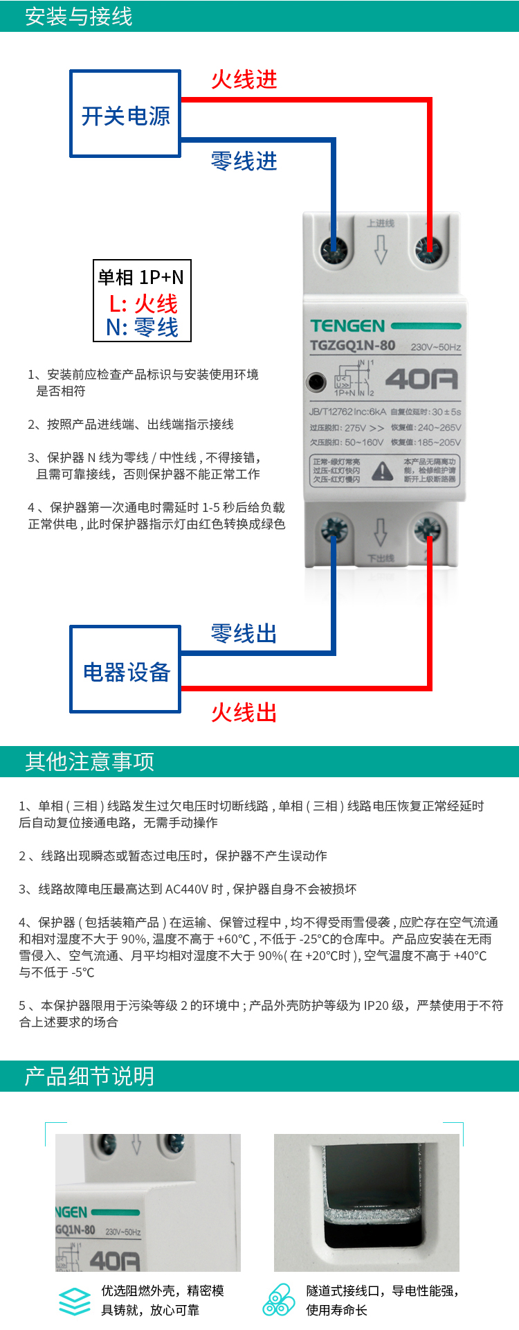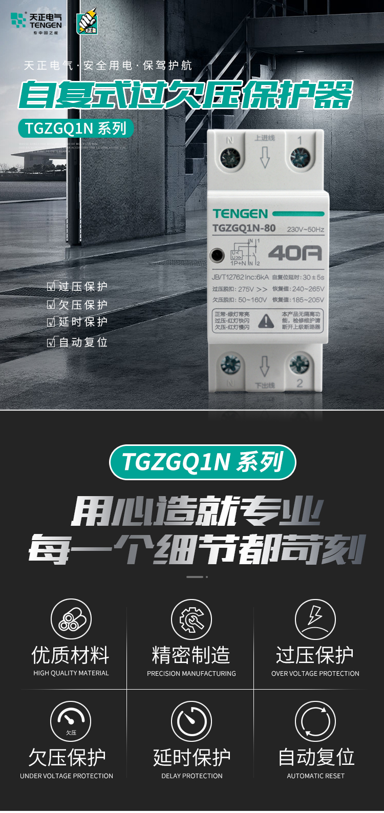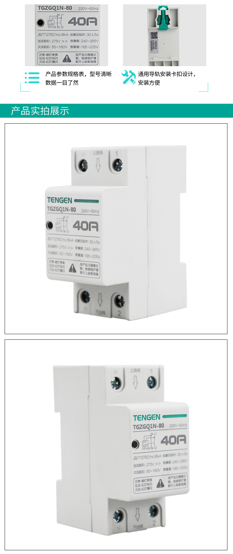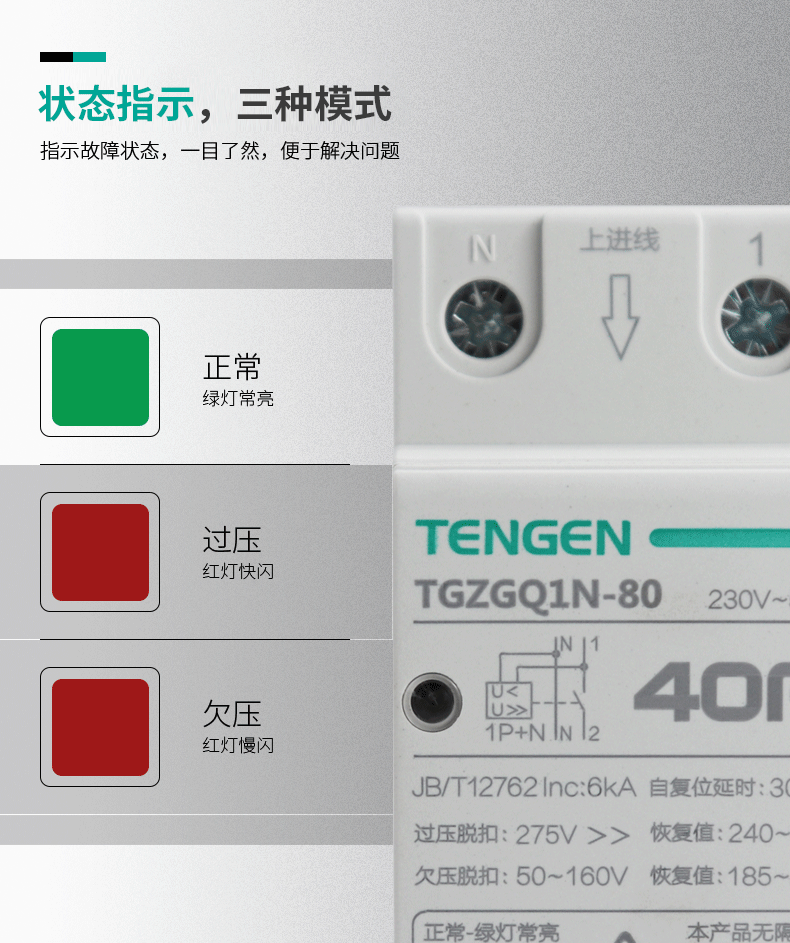 產品名稱:TGZGQ1N系列自復式過欠壓保護器