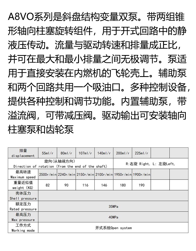 品信液壓柱塞泵 馬達系列A8VO系列