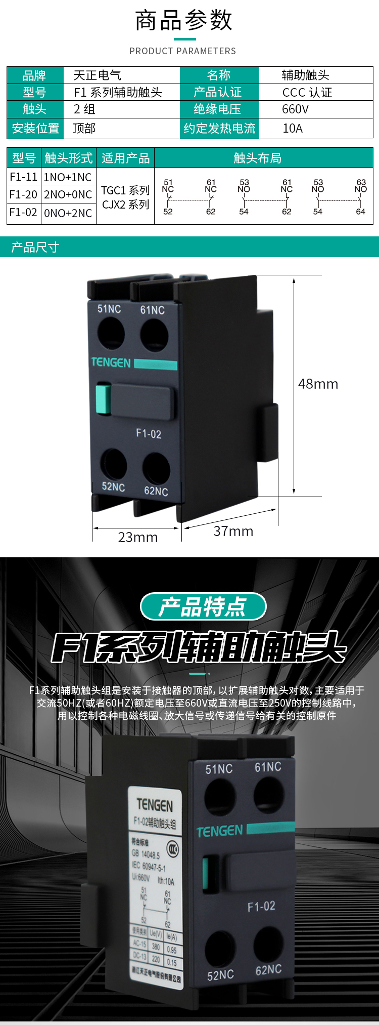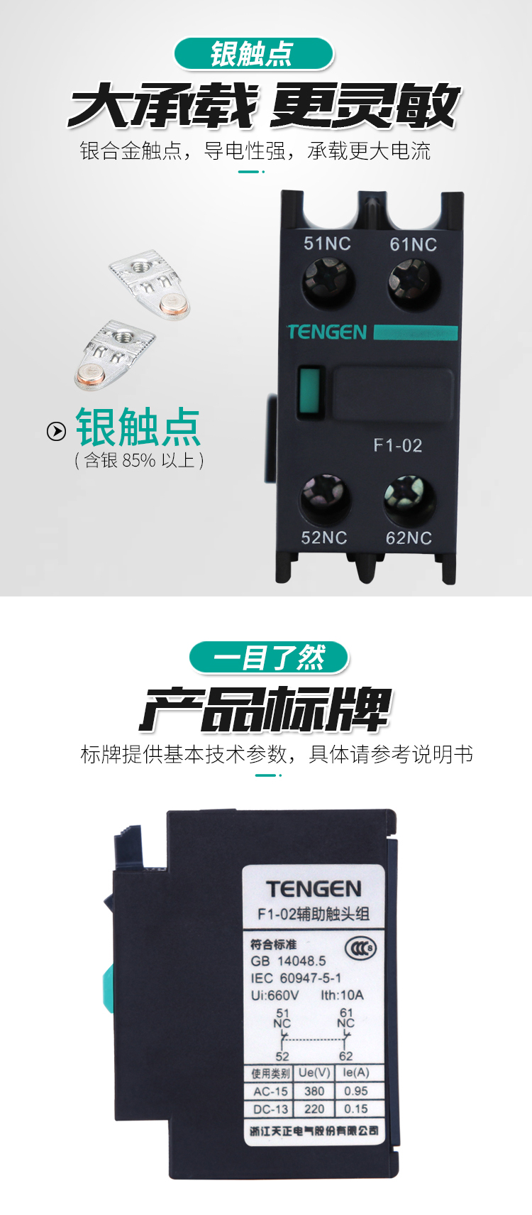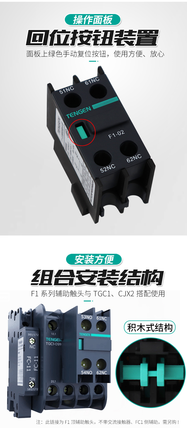 產品名稱:F1系列交流接觸器側輔助觸頭