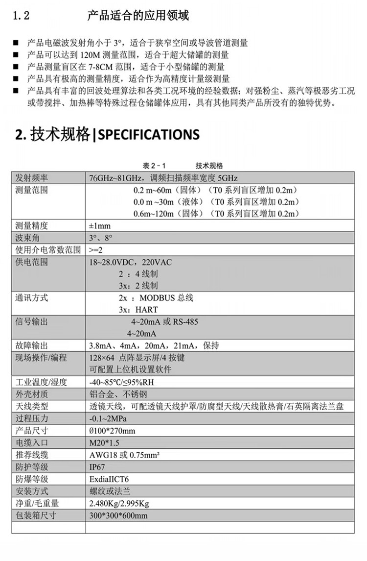 商品型號 經濟款一體雷達液位計