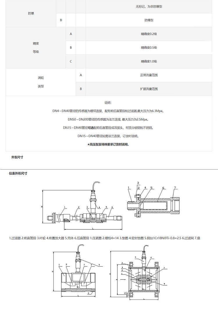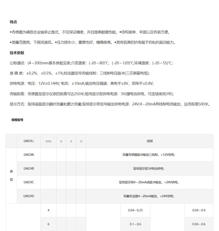 商品型號 LWGY型液體渦輪流量計