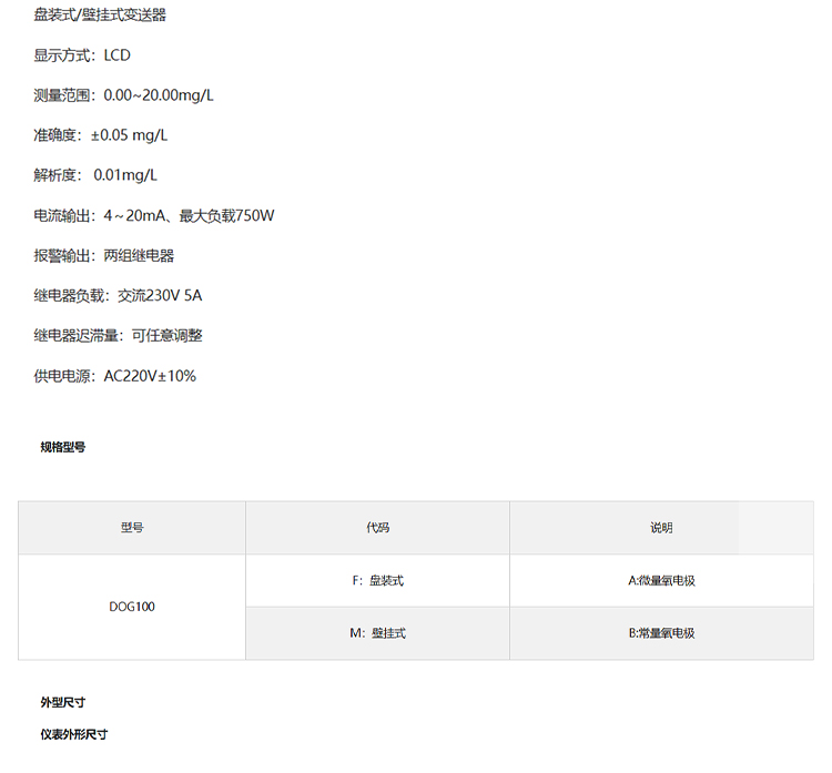 商品型號 DOG100 工業在線溶氧儀