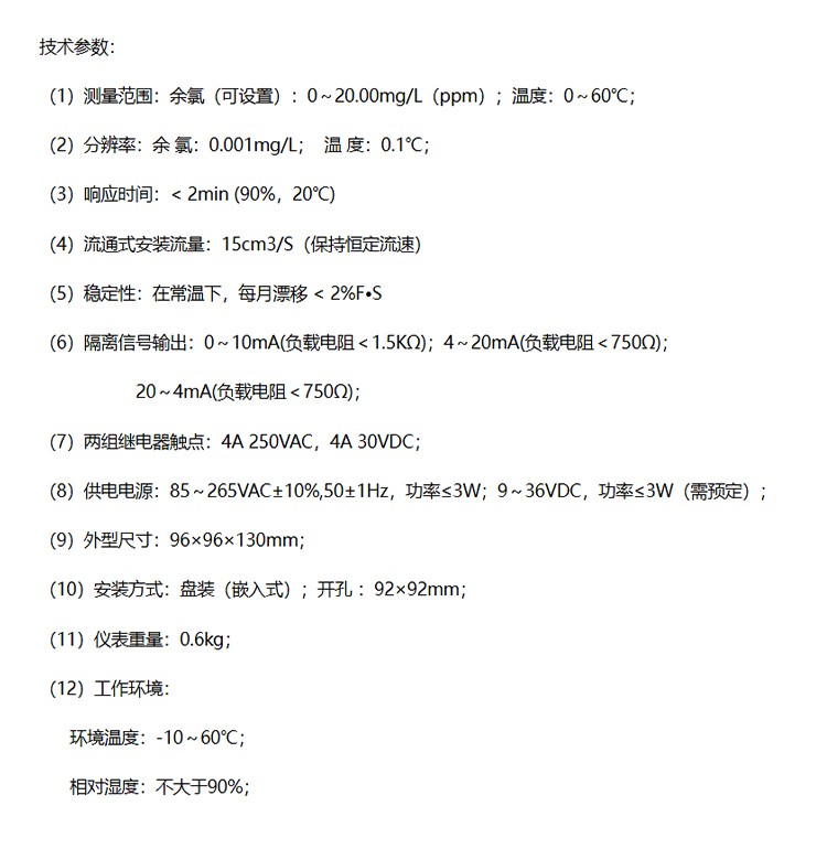 東儀智能現場儀表在線水質分析儀系列在線余氯儀