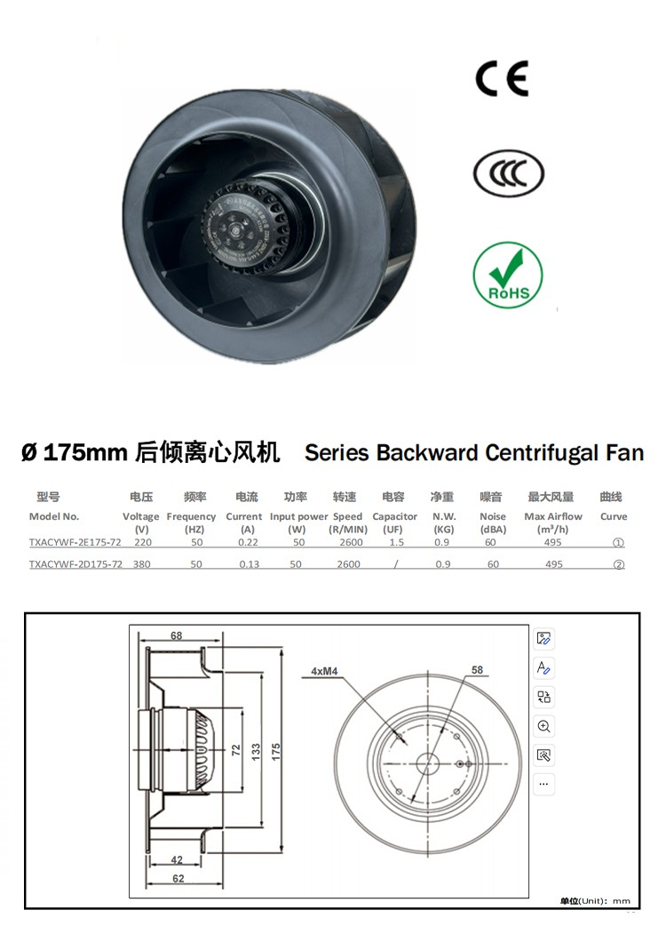 同鑫風機離心風機φ175mm后傾離心風機