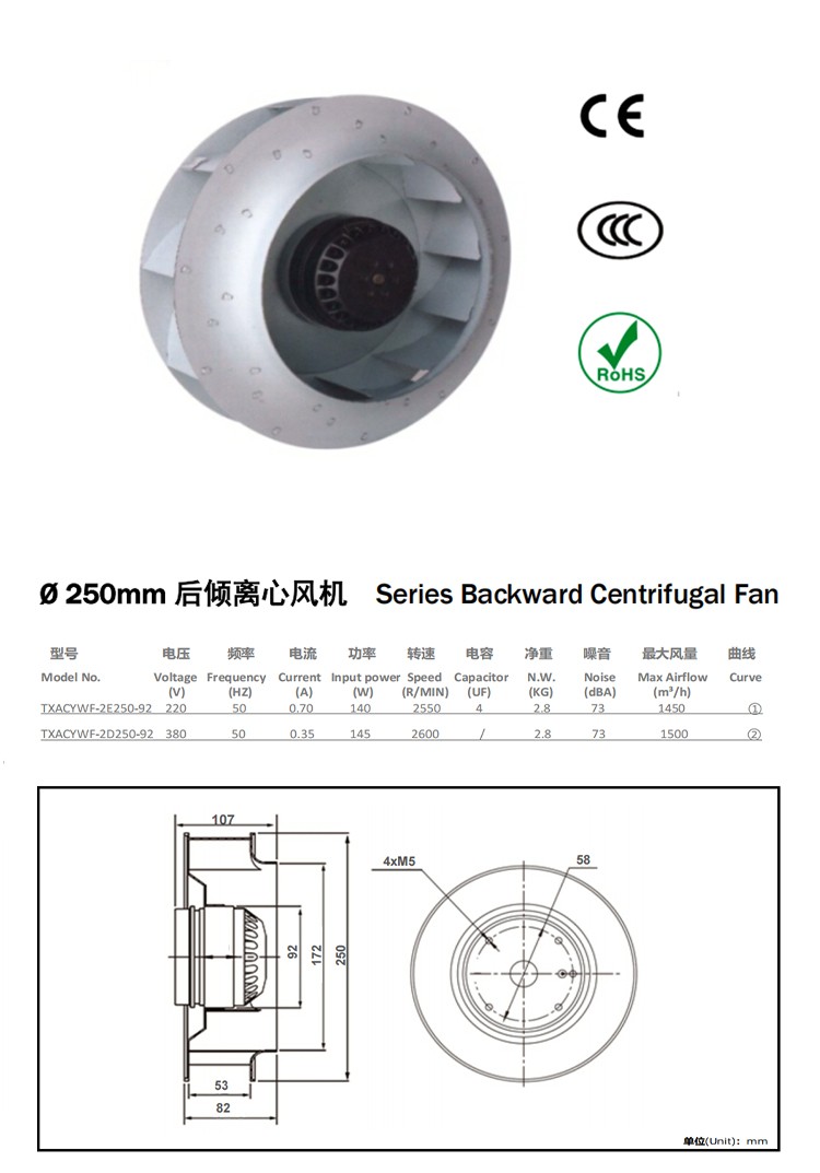 同鑫風(fēng)機離心風(fēng)機銀色φ250mm后傾離心風(fēng)機