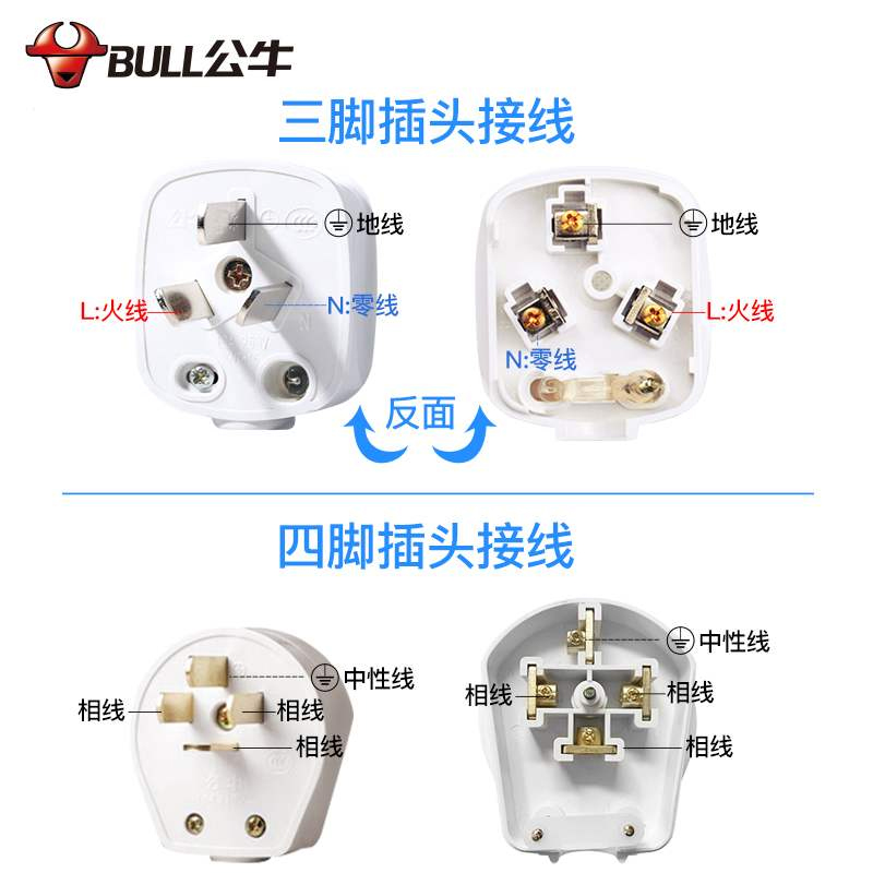公牛三相四線插頭工業電380V大功率16A安四腳項孔440伏插座