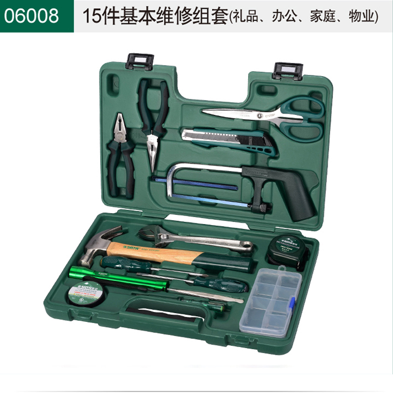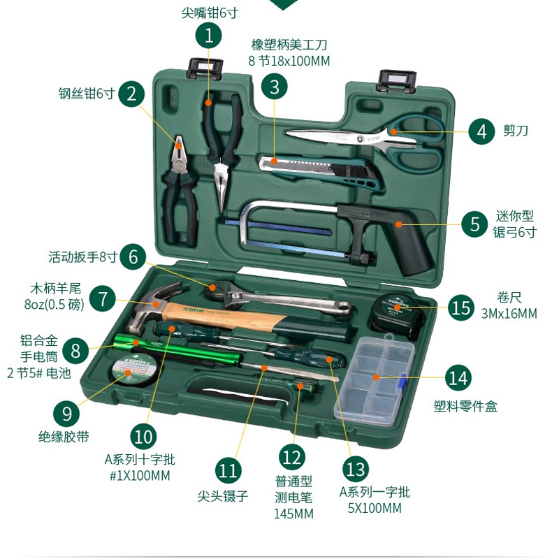 世達家庭套裝電工工具箱家用五金維修組合老虎鉗螺絲刀15件