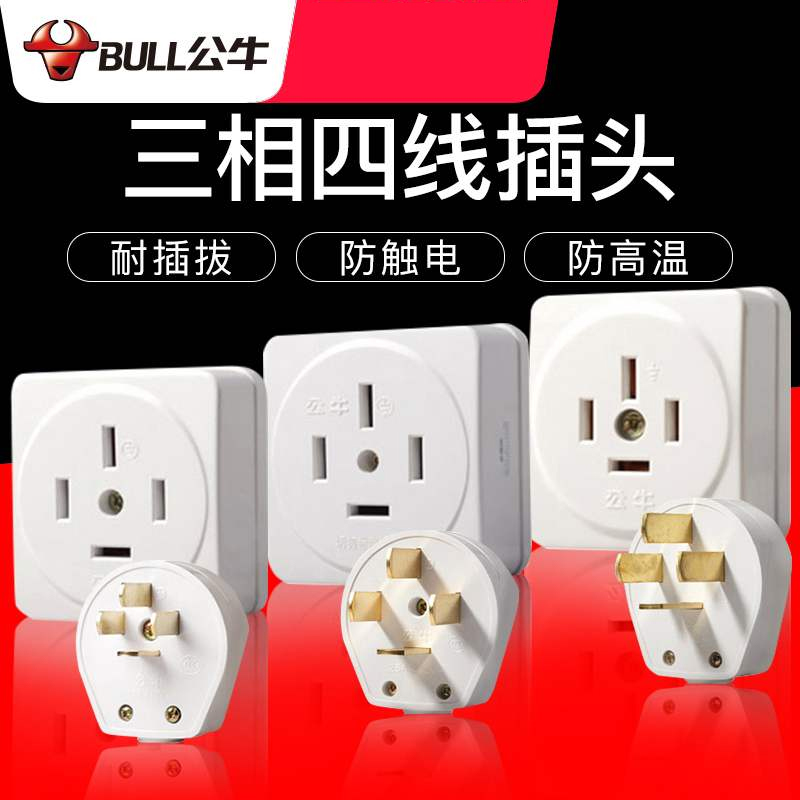 公牛三相四線插頭工業電380V大功率16A安四腳項孔440伏插座